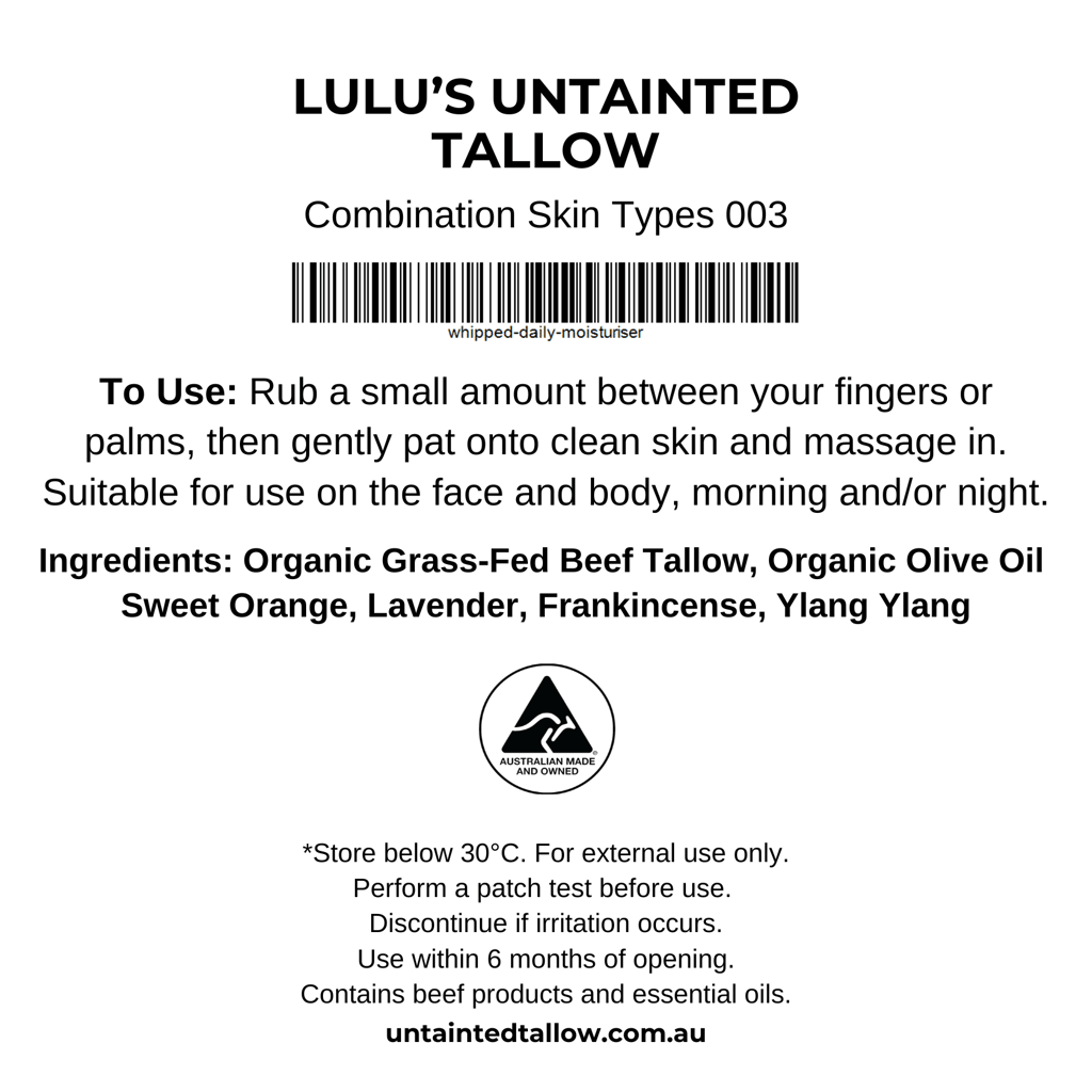 “Achieve balanced, glowing skin with Harmony Glow, our handcrafted whipped tallow cream specially formulated for combination skin. Made with Organic Grass-Fed Beef Tallow, Organic Olive Oil, and a harmonious blend of essential oils, Harmony Glow provides targeted hydration and nourishment for areas of both dryness and oiliness. Each tin is crafted in small batches to ensure quality and care.